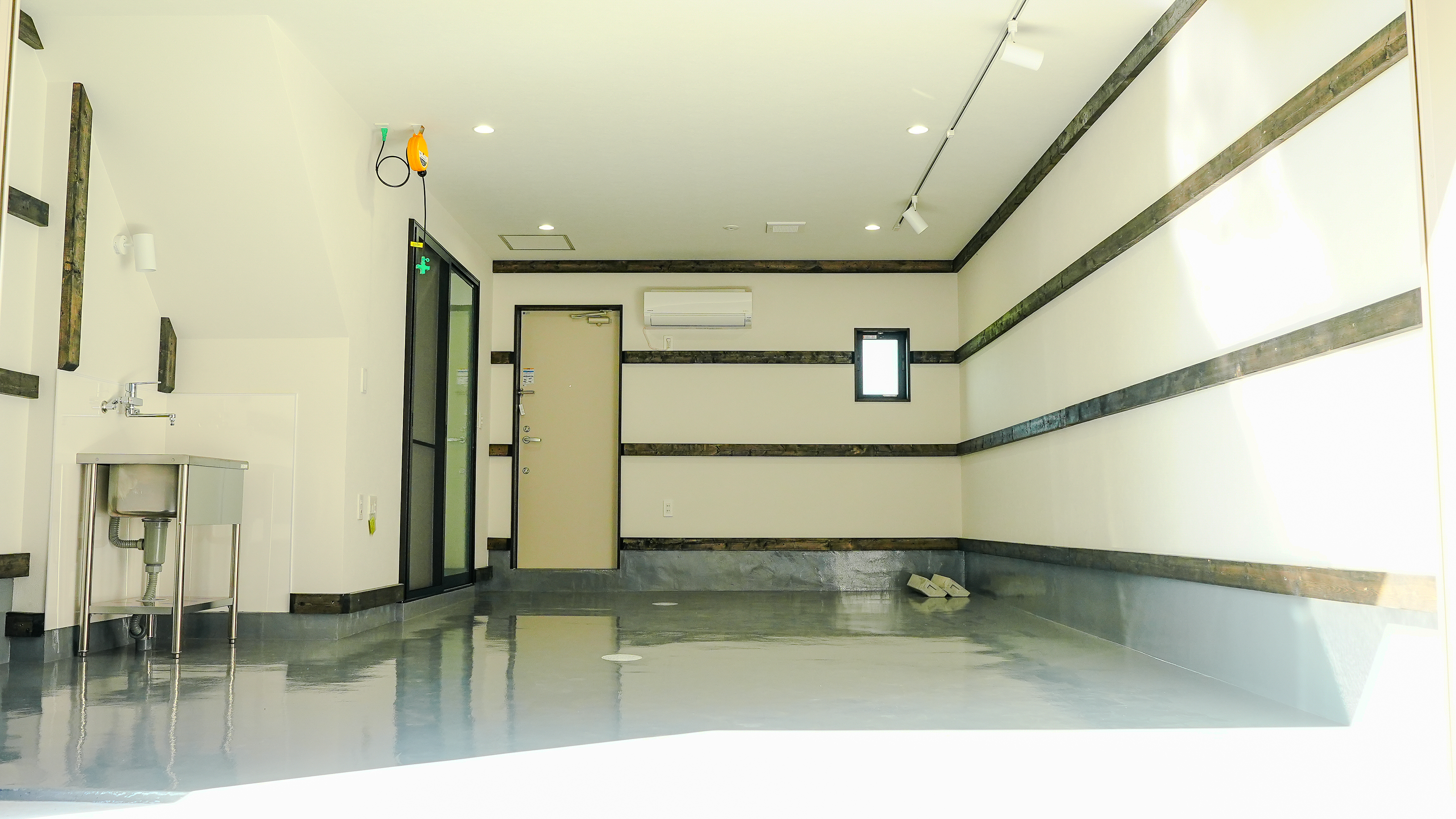 ガレージ幅4.5m×奥行6.3m(最大部分)