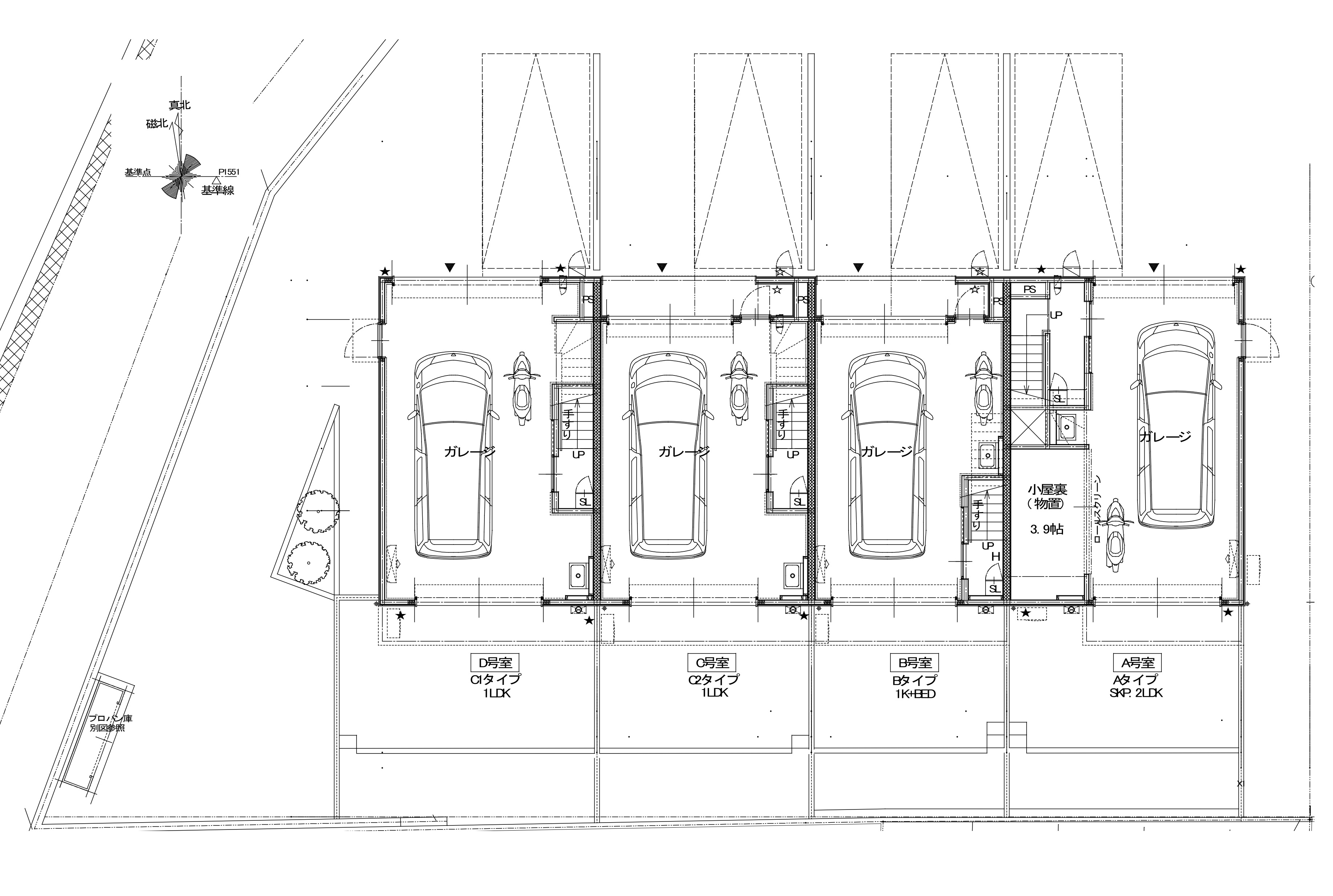全室庭付き!全室シャッター前駐車スペースあり!
