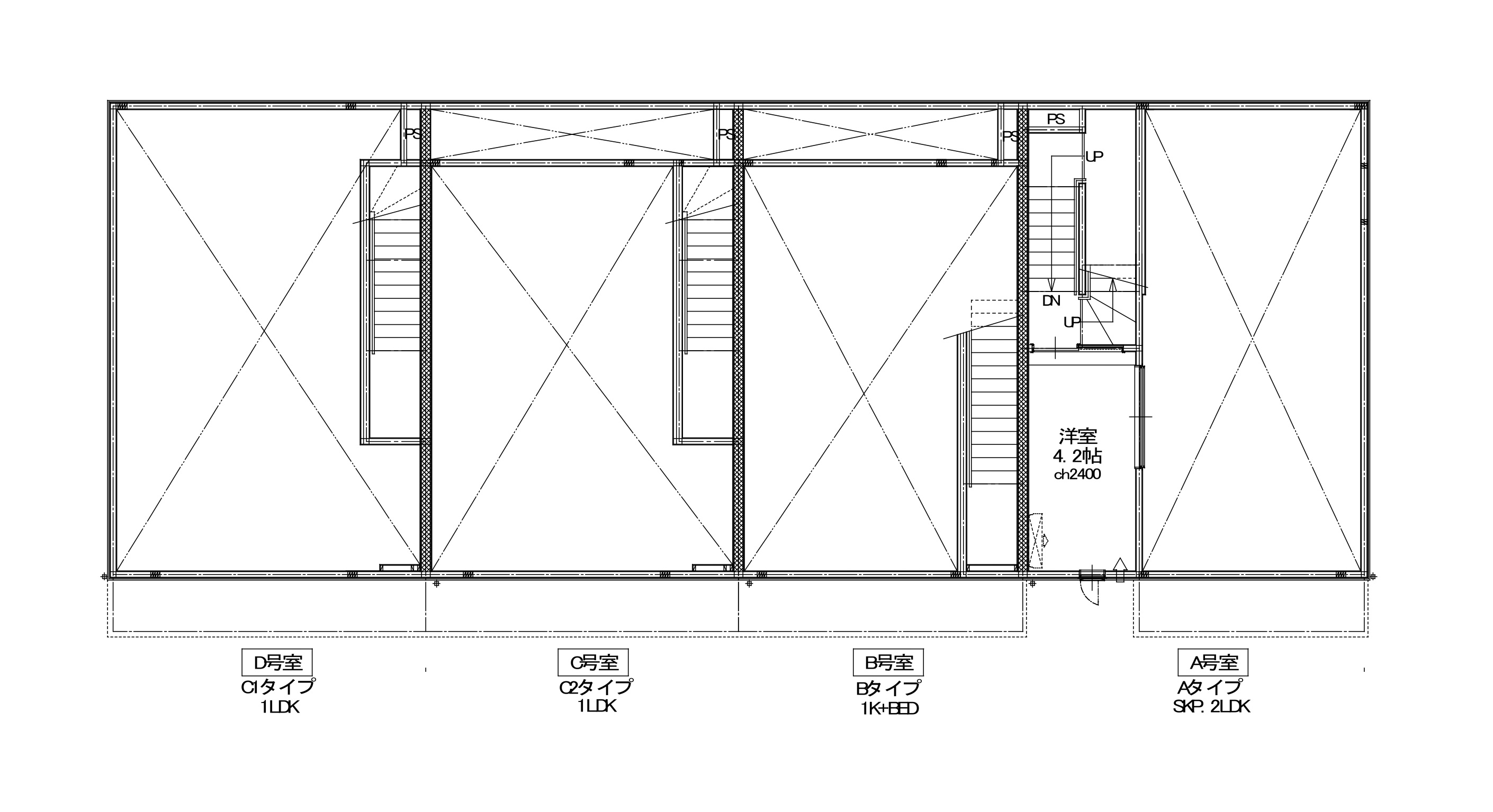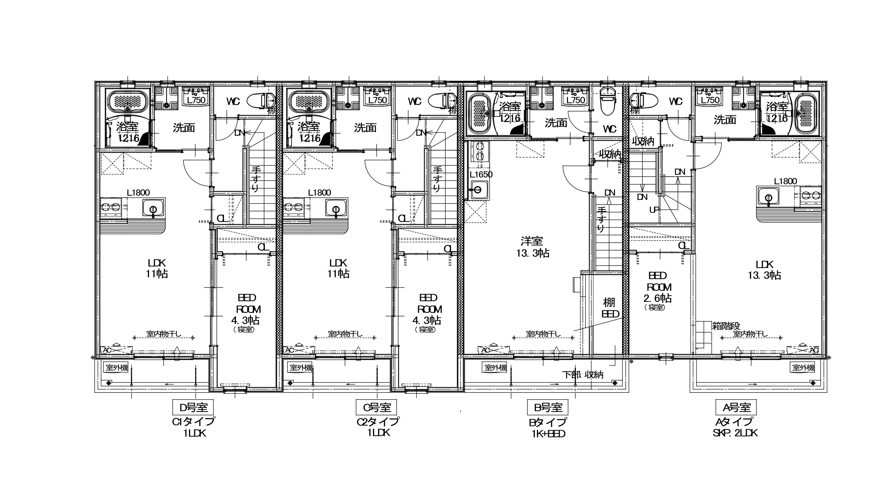 | No. | A(2LDKスキップタイプ) | B(1Kロフトベッド付き) | C(1LDK) | D(1LDK) |